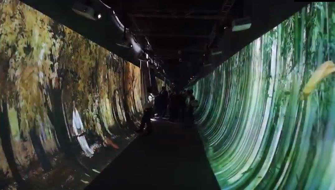 采用高精度的投影設(shè)備,將數(shù)字內(nèi)容投影到走廊兩側(cè)活三面(含地面),整體沉浸感非常強,結(jié)合互動感應(yīng)裝置,可以帶來更好的體驗。